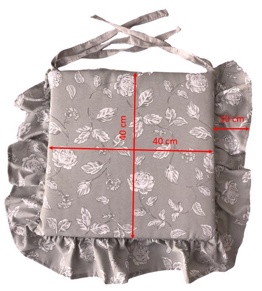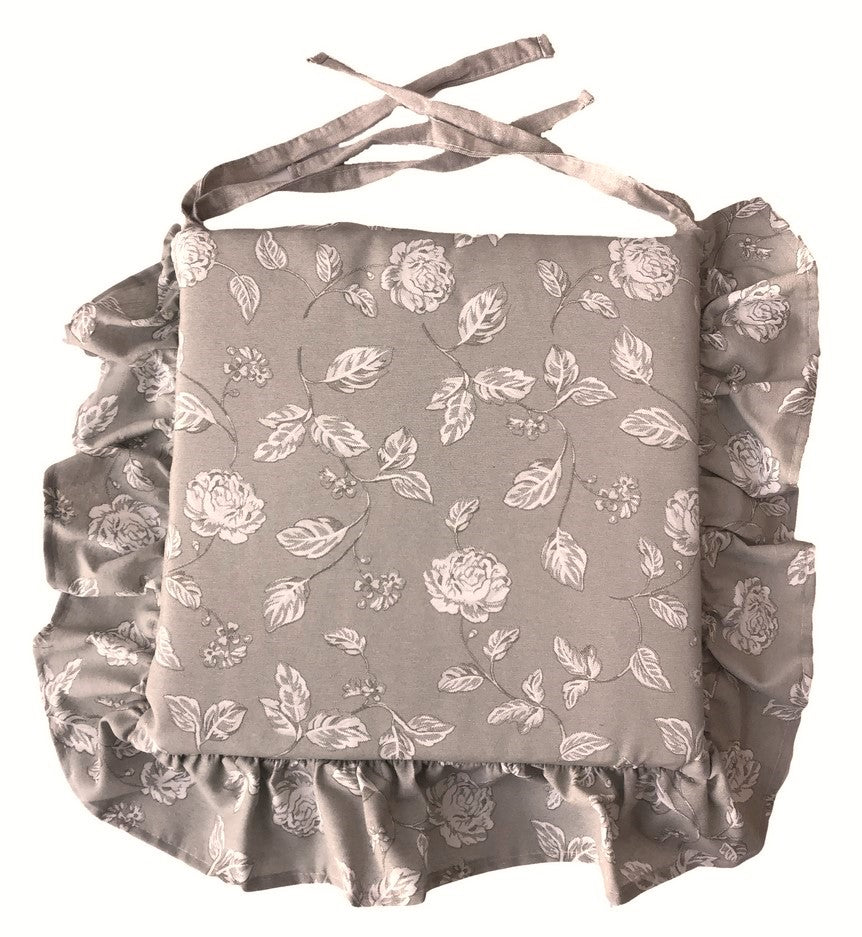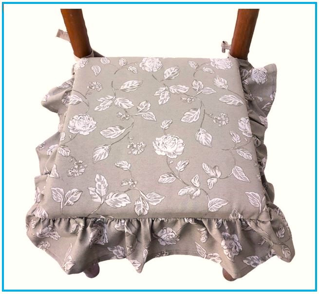 Coussins de chaise à volants - lot de 6 pièces - lavables - tissu coton - coloris gris tourterelle
